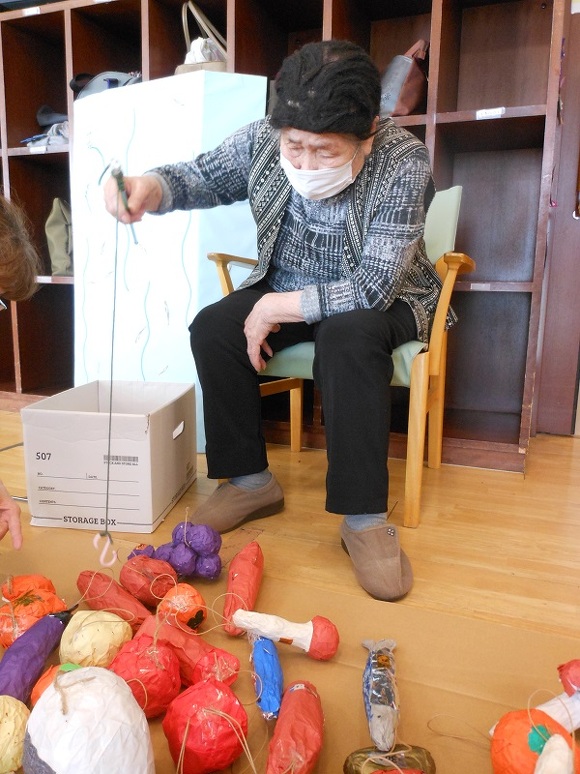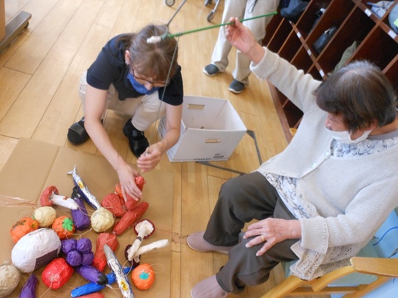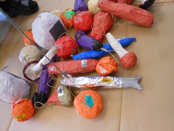 2023年10月07日(土) 秋の味覚を釣ろう “秋の味覚”の魚・野菜・果物、おにぎりなどを S字フックで作った釣り竿で釣ってもらいました! それぞれの獲物に点数がついており、 皆さん釣り方をそれぞれ工夫され、 高得点を狙って頑張っていましたよ!