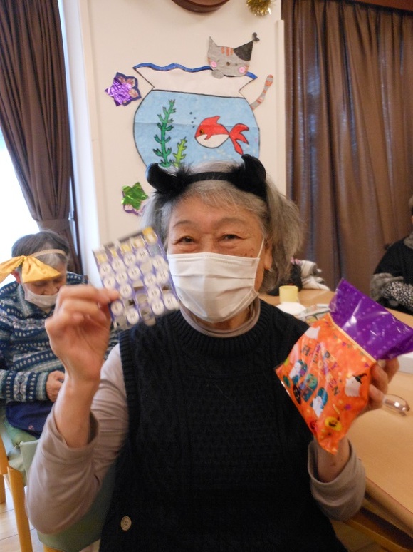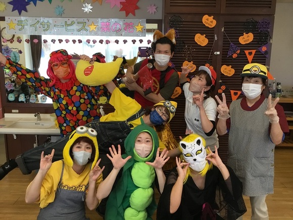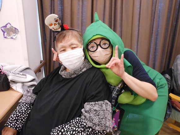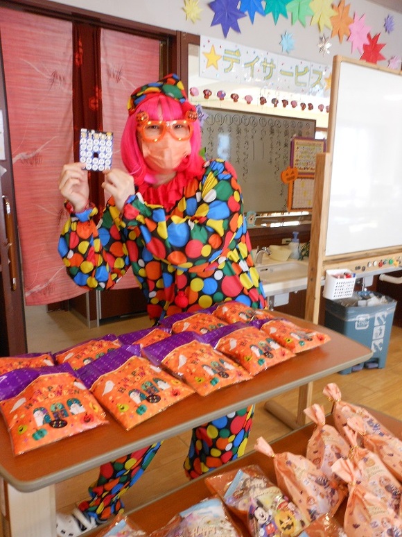 2023年10月31日(火) ハロウィ~ン♪ 今年もやってきました!! ご利用者様と職員が変身するスペシャルな日!! 皆さん変身後もステキでしょ? 変身よりも 「早くビンゴにならんかな?」 とビンゴゲームの景品にわくわくされる方、 ビンゴになっていなくても「ビンゴ!」と言われる方、 ハロウィンビンゴは大盛り上がりでした♡ おやつもハロウィンにちなんだおやつで 「美味しい」と声も頂き、楽しい時間を過ごしました♪