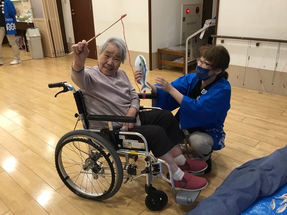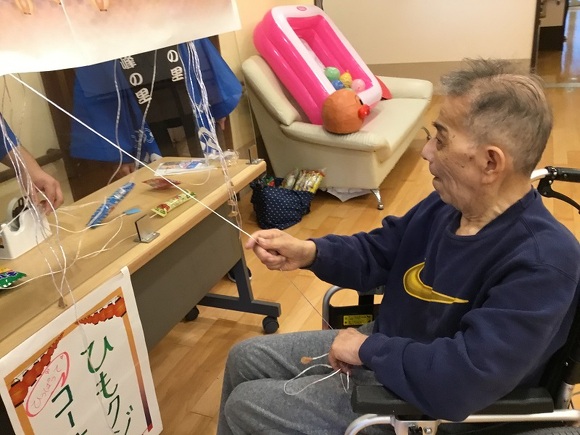 2023年11月12日(日) 明峰の里秋祭り 年に1度のお祭り。 ようやく今年からご家族をお招きする運びとなりました。 皆さんに喜んで頂けるよう、ゲームの景品にお菓子やお面・ ぬいぐるみなどを揃えて準備万端! お祭り当日、大きなぬいぐるみを手にして 「これ、いいわぁ」と喜ばれる方や 紐くじ・魚釣りなどのミニゲームを楽しまれて満面の笑顔の方も★ 手に入れたお菓子は後日美味しくいただきました♪