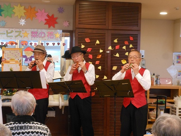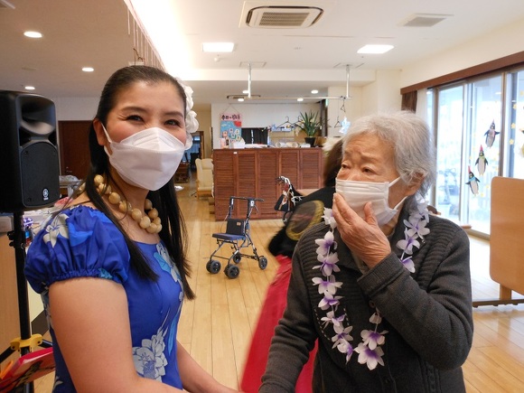 2023年12月02日(土) ボランティアさんいらっしゃい♥ 11月より菜の花ではボランティアの方をお呼びすることになりました。 11月はオカリナ演奏の『九谷の里』さん 12月はウクレレとフラダンスの『Lei Lei』さんにお越し頂きました。 皆さん目を輝かせて、見て聞いて楽しんでおられる様子でした。 今後も色々なボランティアさんをお呼びしたいと思っております! お楽しみに~!!