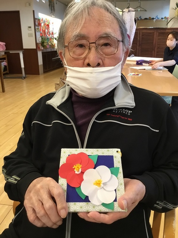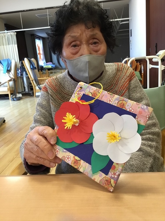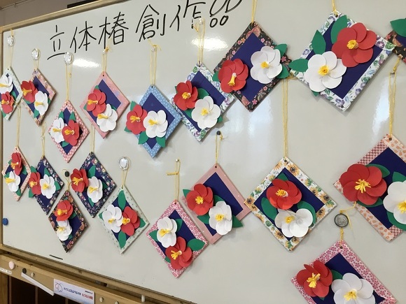 今月の持ち帰り創作は 『画用紙で作った立体の椿創作り』でした!!