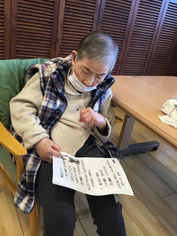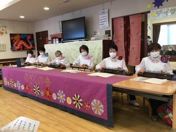 2024年01月30日(火) 今月は大正琴 毎月ボランティアさんに来ていただいていますが、 今月は『大正琴サークル・野菊の会』様でした♥ 準備した歌詞カードを見ながら素敵な琴の音色に合わせて 懐かしい歌謡曲や童謡などを歌いました! 利用者様も楽しんでくださり、 また来て欲しいという声がたくさんありました(^^♪ 野菊の会様ありがとうございました!!