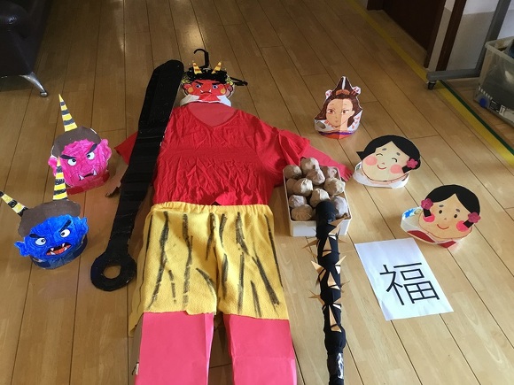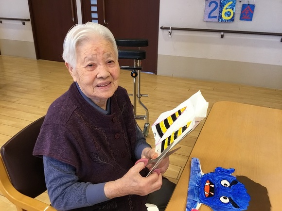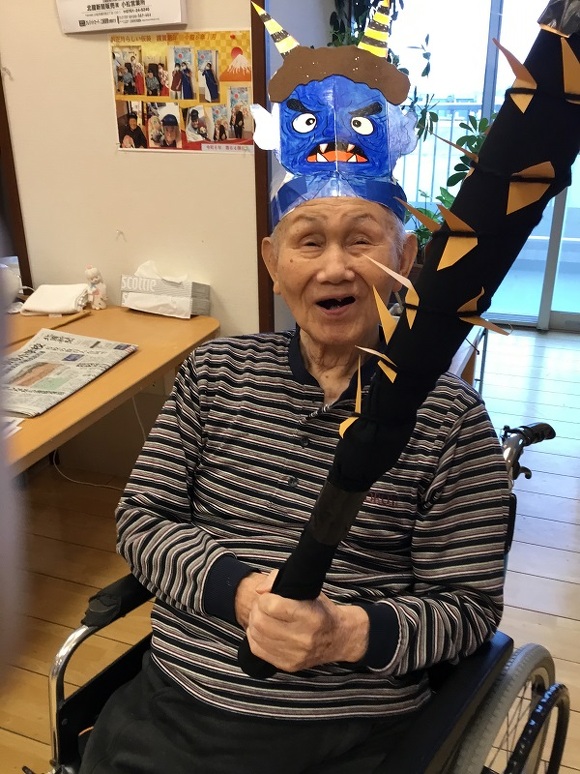 2024年02月03日(土) 節分行事 毎年2月3日は節分!! それに合わせて、福の神や鬼のお面などを利用者様と一緒に作成しました♪ 鬼の角の部分はただいま作成中です(^0^) また、節分を五感で感じるため、様々なお面をつけて簡単な仮装を! 紙で作った福豆を使って、鬼退治をしました!
