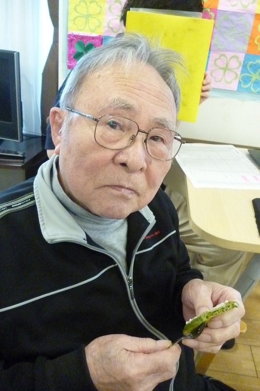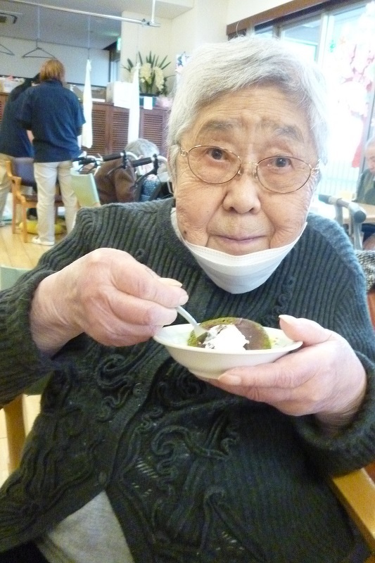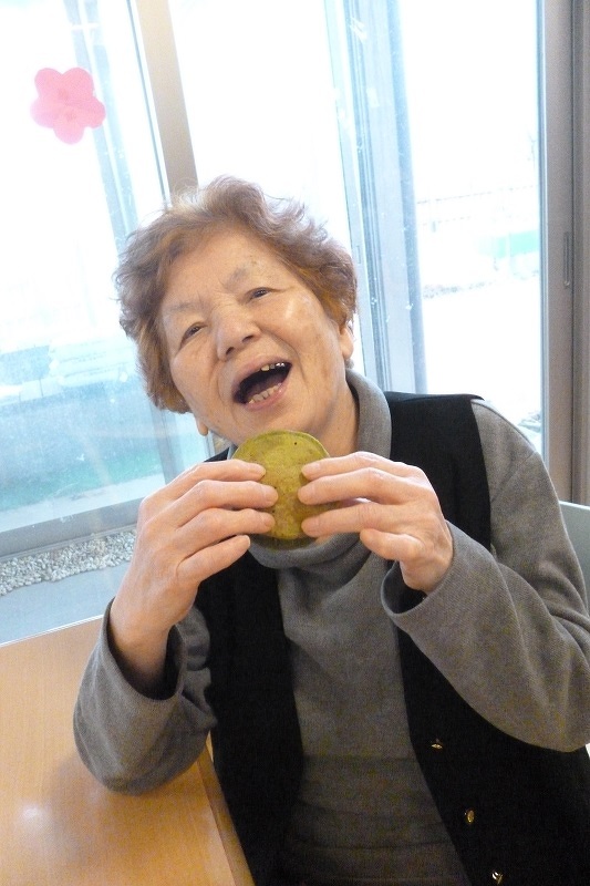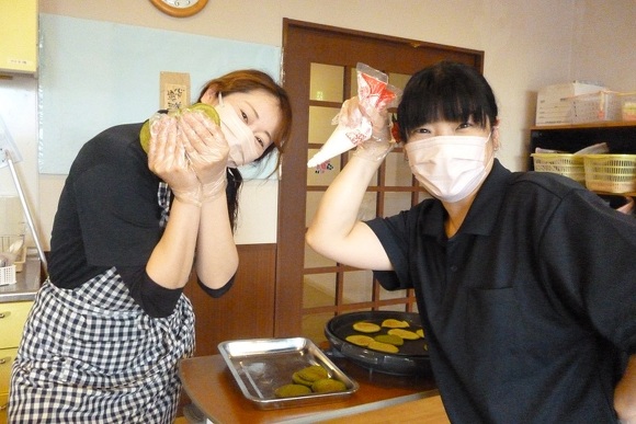 2024年03月21日(木) ふわふわしっとり 甘くてにっこり 今日の手作りおやつは抹茶の生どら焼きです。 抹茶を生地に混ぜると、綺麗な緑色になりました。 生地を焼くとお茶のいい香りが漂ってきます♡ 焼き上がった生地にあんこと生クリームを挟み完成です! 早速できたてホヤホヤのどら焼きを皆さんで「いただきます!!(^^)! 生クリームで美味しさは倍増♡ 「美味しぃ~♡」 「こんな旨いもん初めて食べたわぁ♪」 と、皆さんに喜んで頂きました!