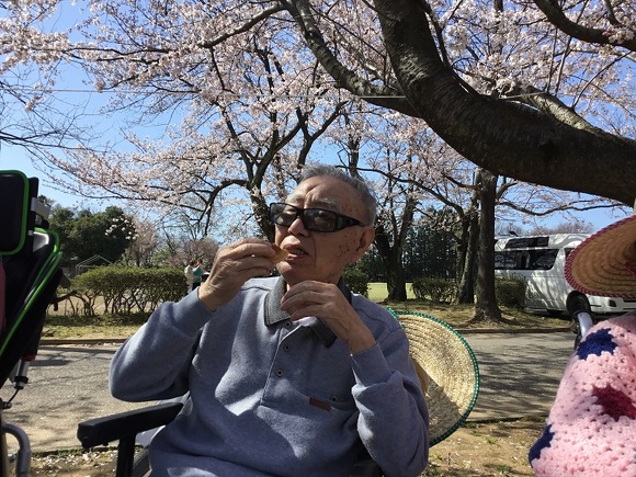 桜並木を見ながら持参したおやつをパクリ。
