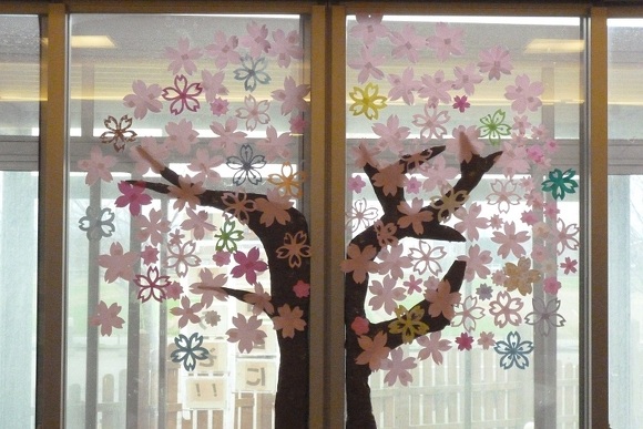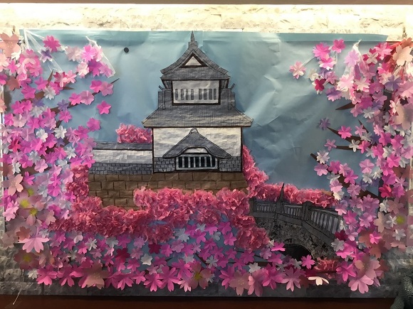 2024年04月01日(月) 桜咲く 今年の桜はどこもかしこも綺麗に咲いてました♪ 菜の花のフロア内は桜で満開!! 正面にはお城と桜。 窓には大きな桜の木。 玄関には桜のリースなど、桜!桜でいっぱい♡ 気温も春らしくなりワクワクします!!