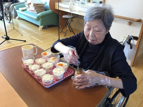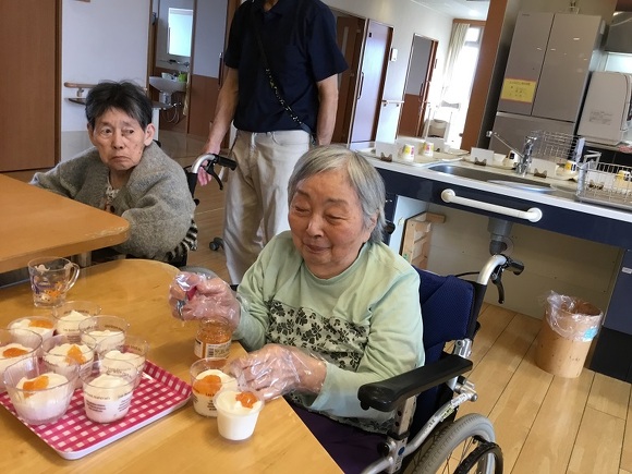 2024年06月02日(日) パンナコッタのデザート おやつにパンナコッタのデザートを作りました。 入居者様にはカップに入れたパンナコッタに マンゴフルーツの盛り付けをしていただきました♡ 「甘くてさっぱりしてるね!」 「美味しかったよ」と大満足のご様子でした♪