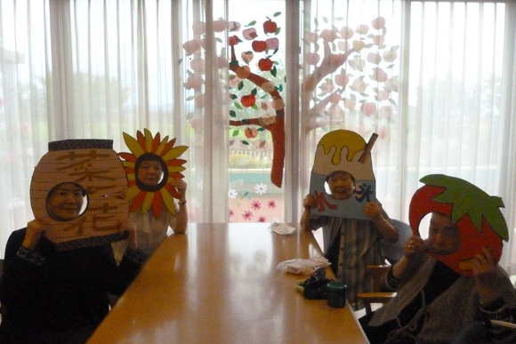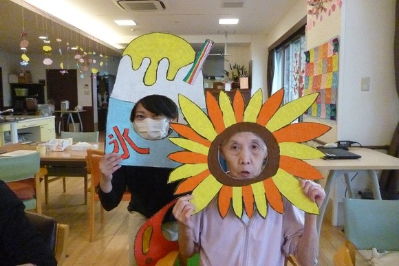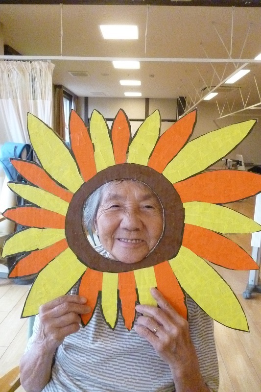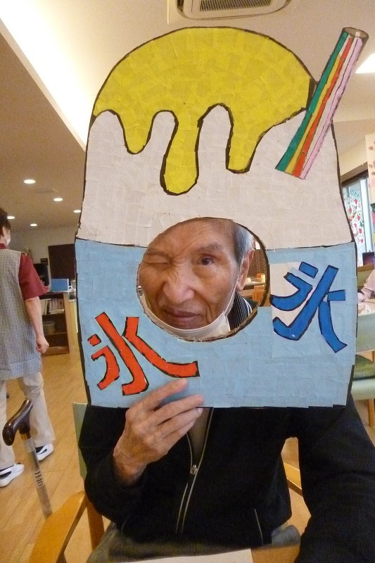 2024年08月26日(月) 8月のイエーイ! 8月のフォトフレームは『かき氷・提灯・向日葵・トマト』。 かき氷と提灯の貼り絵の細かい部分は、 いつもより少し時間がかかりましたが、 とても綺麗に貼ってくださいました♪ また、トマトの瑞々しさを表現するために金色を貼ったり 花びらを2色にして華やかさが増した向日葵など、 素敵なフレームが完成しましたよ♪