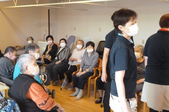 2024年09月19日(木) 防災訓練 菜の花キッチンから出火したという想定で防災訓練を行いました。 利用者様は非常ベルの音にビックリされていましたが 雨が降っていたので外ではなく、玄関と静養室に落ち着いて 避難されてました。