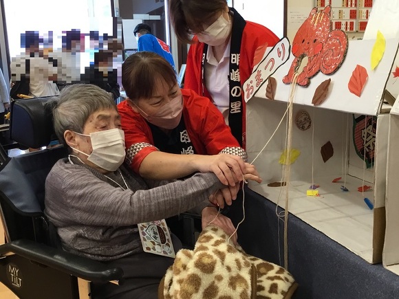 2024年10月27日(日) めいほう秋祭り! めいほう秋祭りに参加しました! ゲームコーナーでは 輪投げ・コイン落とし・絵合わせ・じゃんけん・おじゃみ・ひもくじ と順番にまわり皆さん次々に景品をゲット♡ 人形やクッション・タオルなど色々な景品が当たり 皆さん笑顔で楽しんでおられました♪