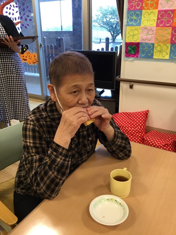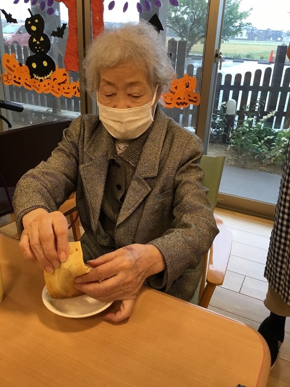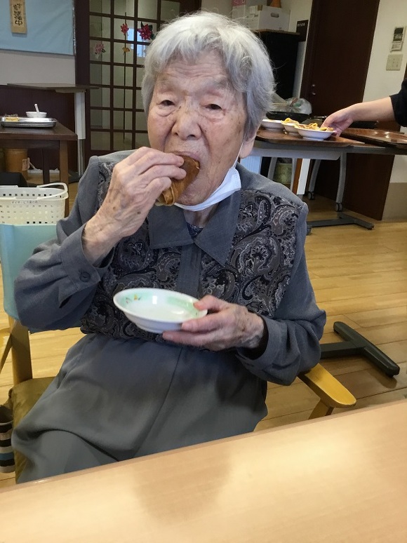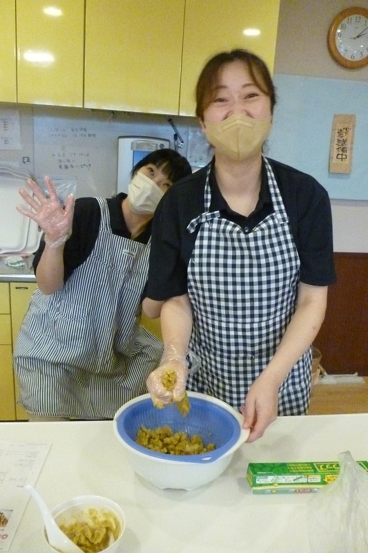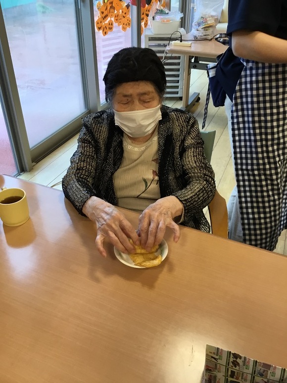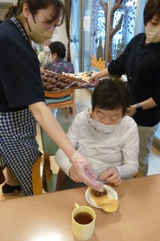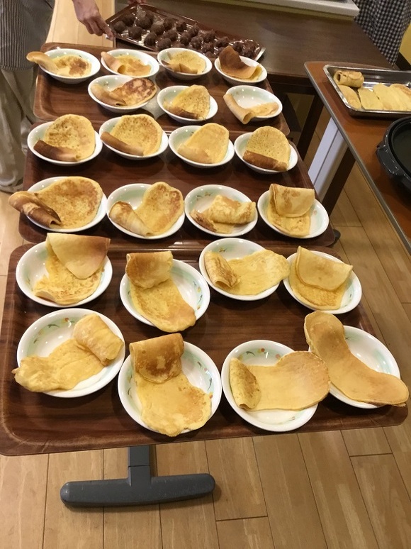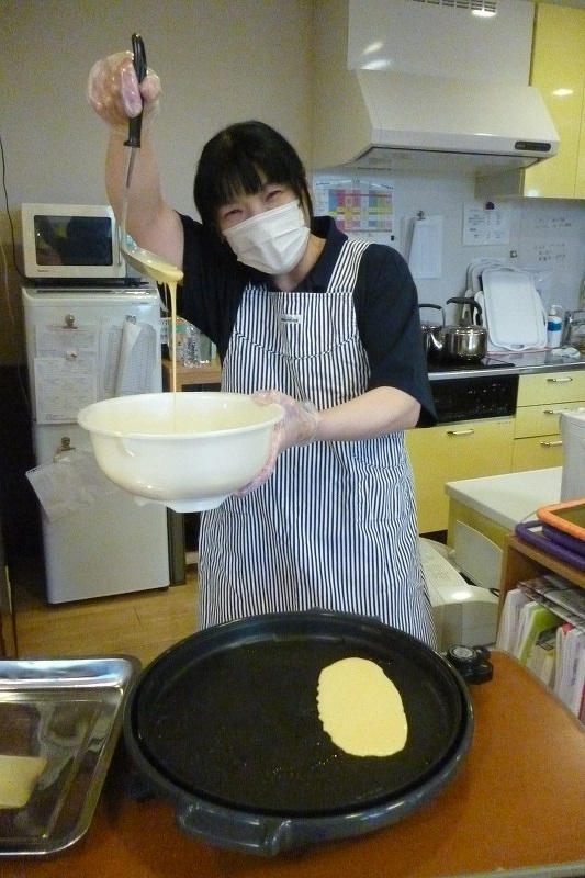2024年10月07日(月) 食欲の秋~手作りおやつ~ 今日はあんまきを作っていきます。 贅沢に秋の味覚の栗の甘煮を入れて♥ まずは生地を作ります。 生地が出来たら栗とあんこをまぜまーす(^O^) 生地を焼きます。長ーく… 栗入りあんこをを巻きやすいように俵型にします。 じゃじゃーん はいどうぞ♥生地にあんこをのせて 生地であんこをまきまきしてもらい いただきま~す! ぱくっ!!おいし~☆ 皆さんに「おいしい」とうれしい声をたくさんいただきました。 またおいしいおやつ♥作りますね♥