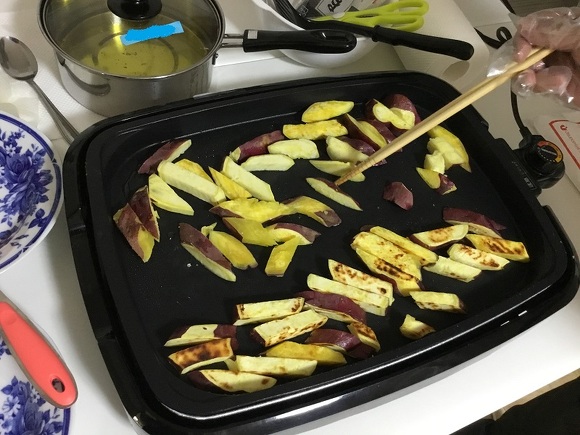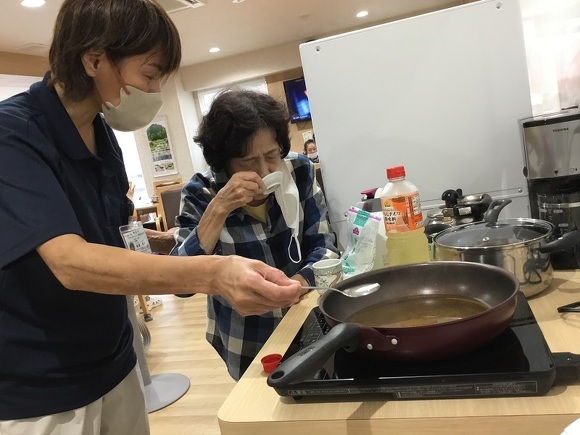 2024年10月19日(土) ほくほくお芋(^O^) さつま芋が美味しい季節です。 小松にあるデイサービスセンター菜の花からの おすそ分けのさつま芋を使って“大学芋”を作りました♪ とはいえ、、、、大学芋に重要なたれ作りに少し不安な職員(;^_^A こんな時、頼りになるのは経験豊富な利用者様です! 一緒に材料を混ぜ、味見をしながら美味しいたれを作りました。 「たれが良い味付けね」「美味しいわ~」と、 皆さんぺろりと召し上がられました♪