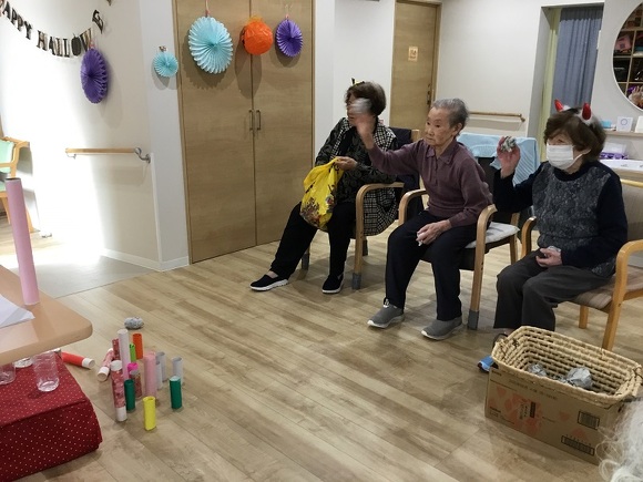 2024年10月31日(木) ハロウィーン 菜の花かなざわで初めてのハロウィーンイベントです! 利用者様も職員も普段とは違う姿に変身♪ レクリエーションもハロウィーン仕様!! チームで協力し、全ての的を倒していただきます。 最後の一本がなかなか倒れない! 諦めずにボールを投げ、とっても熱くなりました(#^^#)