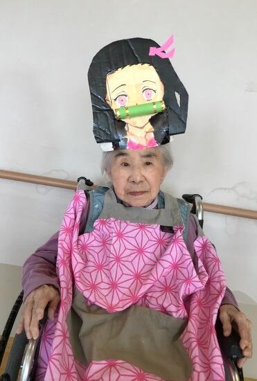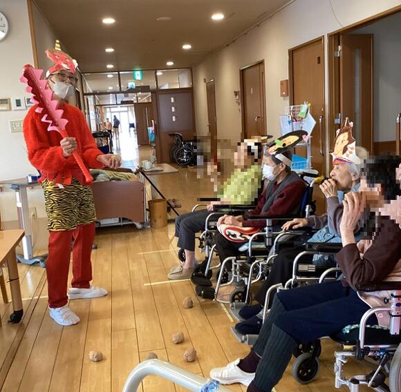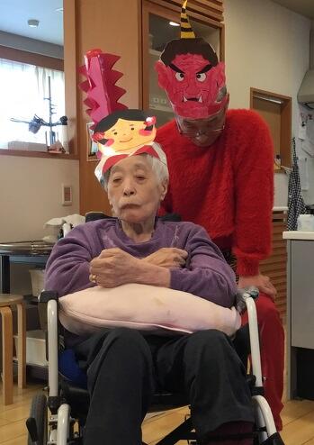 また、利用者さまにも節分らしい簡単な仮装を準備しました! 皆さんとても似合っていますね♡