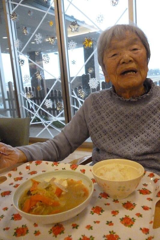 2024年12月27日(金) お鍋であったまりました 本日の昼食は野菜をたっぷり使った醤油とお味噌のセレクトお鍋です。 大きなお鍋に野菜とお肉などなど。 作っているそばからフロア内に良い香りがたちこめています。 寒い季節に美味しく温まりました♡