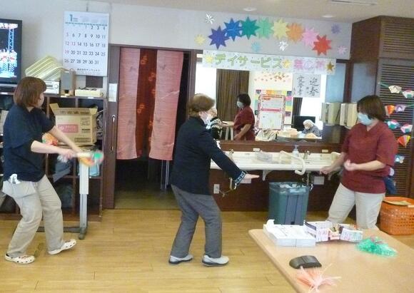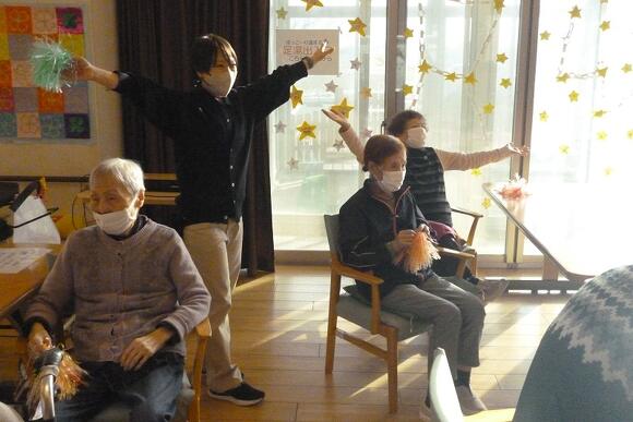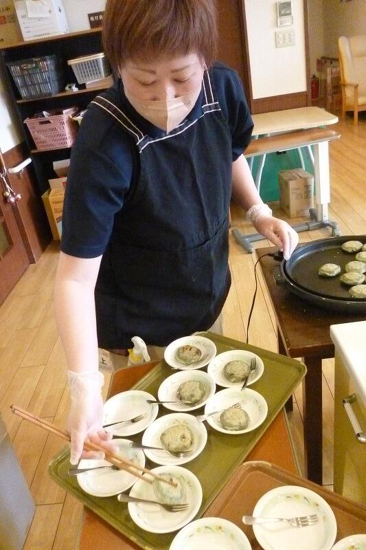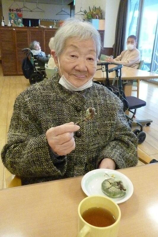 2025年01月09日(木) 今月の手作りおやつと新年会 新年初めての手作りおやつは… 新年会を兼ねて、ヨモギと胡麻が香る『焼き大福』を作りました。 白玉の生地にはヨモギ粉を、中の餡子には黒胡麻を♡ ホットプレートでこんがり焼き色をつけて~♡ あたたかい大福はとっても好評でした!! 焼き上がりを待っている間はみんなで マツケンサンバをノリノリで踊りました♪ 次回のおやつもお楽しみに~♪