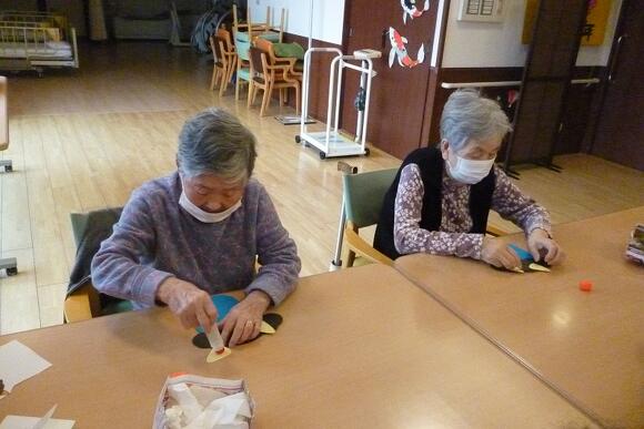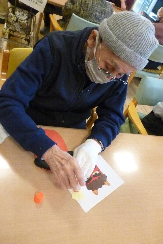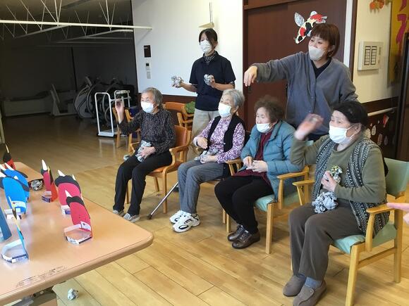 2025年02月03日(月) 鬼は~外!福は~内! 本日は節分!皆様で鬼の面創作をしました。 もじゃもじゃの髪を貼り、尖った特徴的な角を貼りました。 最後に牙や尖った眼を書き、自分だけの鬼が完成! 優しい皆様が作った鬼は、優しそうな顔をしている作品が多かったです。 その後は、新聞を丸めた大きな手作り豆?!を使い豆まきをしました(^O^)