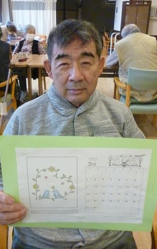 2025年02月28日(金) ハルカレンダー 3月のカレンダー作りをしました!! 花やお雛様など、好きな絵を選んでいただき塗り絵をして仕上げました。 「もう3月かぁ~✿」と、しみじみ… ステキなカレンダーができました!!