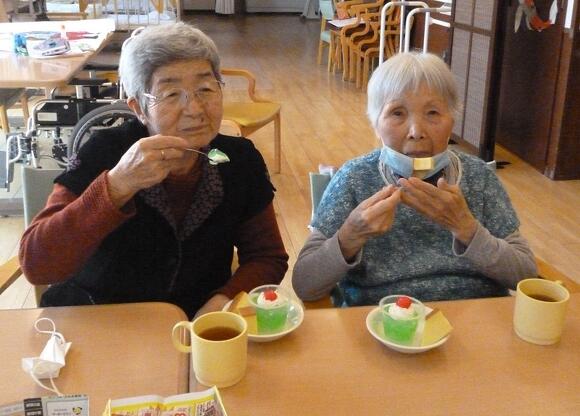 2025年04月16日(水) 昔懐かしい クリームソーダ?!ゼリー★ メロンソーダのゼリーにクリーム… 真っ赤なサクランボ… 鮮やかでかわいいクリームソーダ風ゼリーを 食べました♡(職員の手作りです!) レクリエーションは体操!! いっぱい体を動かした後の冷たいゼリーはとても美味しかったですね~♡