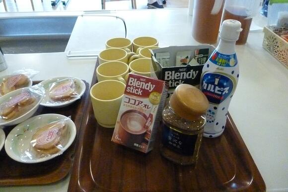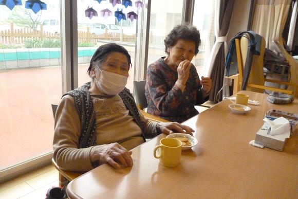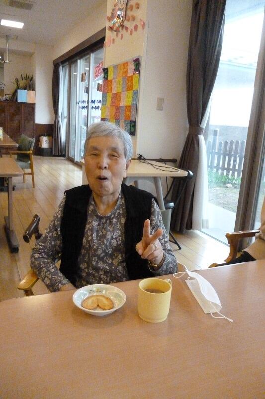 2025年04月24日(木) 菜の花カフェ 4月に入り天気の良い日が続いているので、 桜を見ながらカフェを外で楽しみたいなぁと計画しました。 が・・・・・(;'∀') なぜか当日はとても寒い日になり、屋内でのカフェに変更。 【メニュー】ココアオレ カルピス カフェオレ お茶 に、源氏パイのセットを準備し、お好きな飲み物を選んで頂きました。 カラオケを楽しみながらカフェの雰囲気の中、会話も楽しまれ過ごしました。