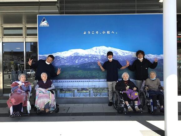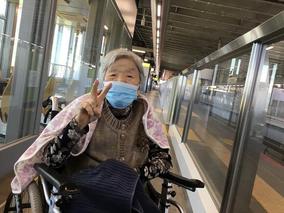 2025年05月07日(水) 小松駅に『かがやき』を見に行こう 春から夏へと季節も移り変わるなか、久しぶりの外出! 昨年に続き「あの新しい新幹線をもっと近くで見てみたいわ」 とのご希望があり、小松駅までお出かけしてきました。 小松駅新幹線乗り場にて「かがやき」が走る姿を眺め、 乗客の方々に手を振る場面も♪ 「あの新幹線どこまで行くんやろ?遠くまで行けるんやろうね」 「私も乗ってみたい!」とにこやかに談笑していました♡