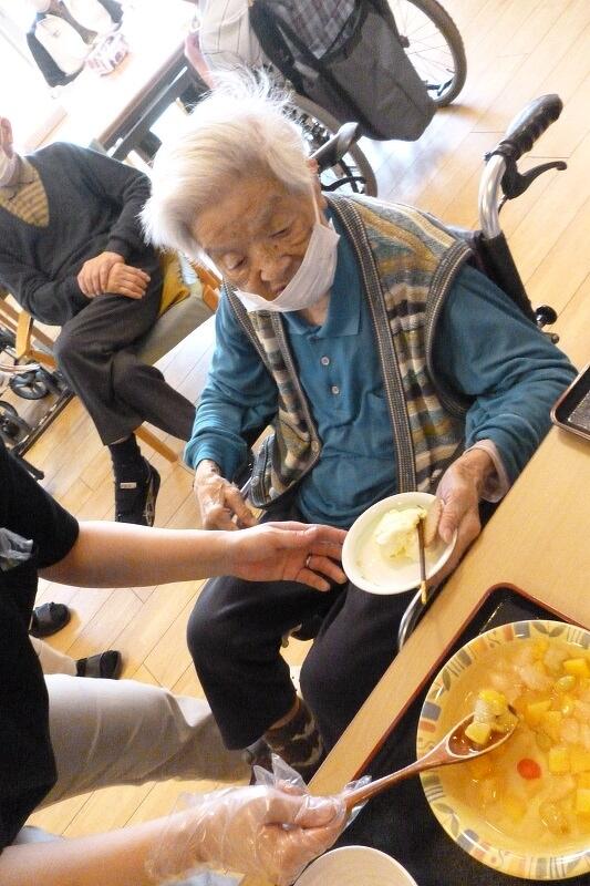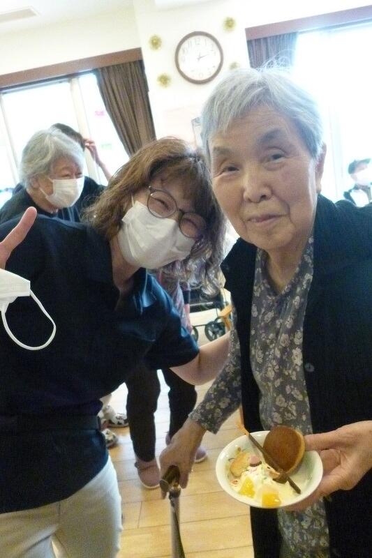 2025年05月20日(火) バイキングパフェ 『アイスに好きなトッピングを好きなだけどうぞ♡』 と声をかけ選んで頂くのですが、思ったより気温が高く アイスが溶けてしまうハプニングが! 遠慮がちな皆さんへ職員オススメのトッピングを お皿にのせ召し上がって頂きました! 皆さんの美味しそうな表情に職員もうっとり♪ たくさん召し上がって頂きました♡♡
