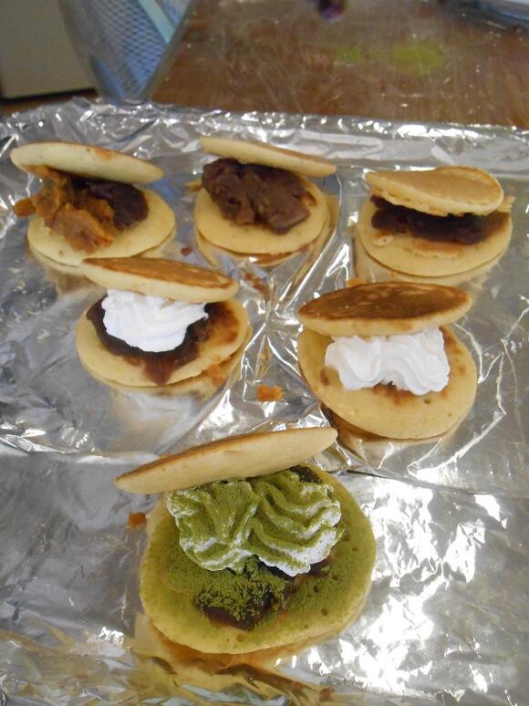 2025年07月10日(木) なのはな庵 スタッフ手作りどらやきに、好きなトッピングを注文してもらい 出来立てを頂きました。 あんこ・甘栗・干し芋・生クリームなどなど。 イケメンお兄さんから手渡してもらい、 みなさま笑顔♡大好評でしたー!! ※人気ナンバー1は『あんこ&生クリームにたっぷりの抹茶パウダー』でした(^O^)