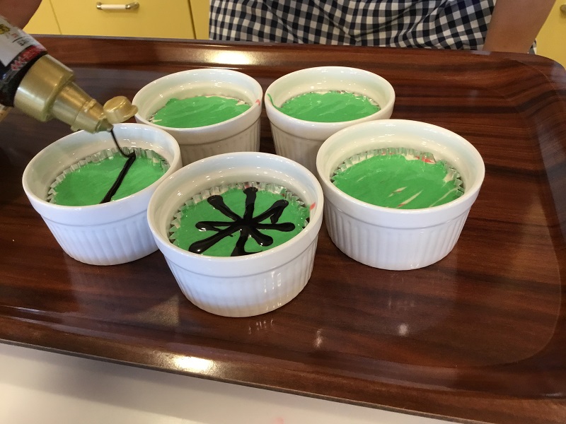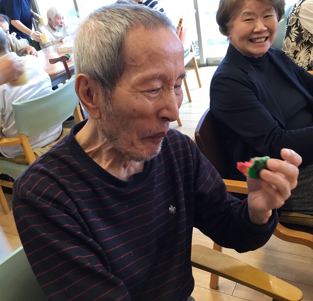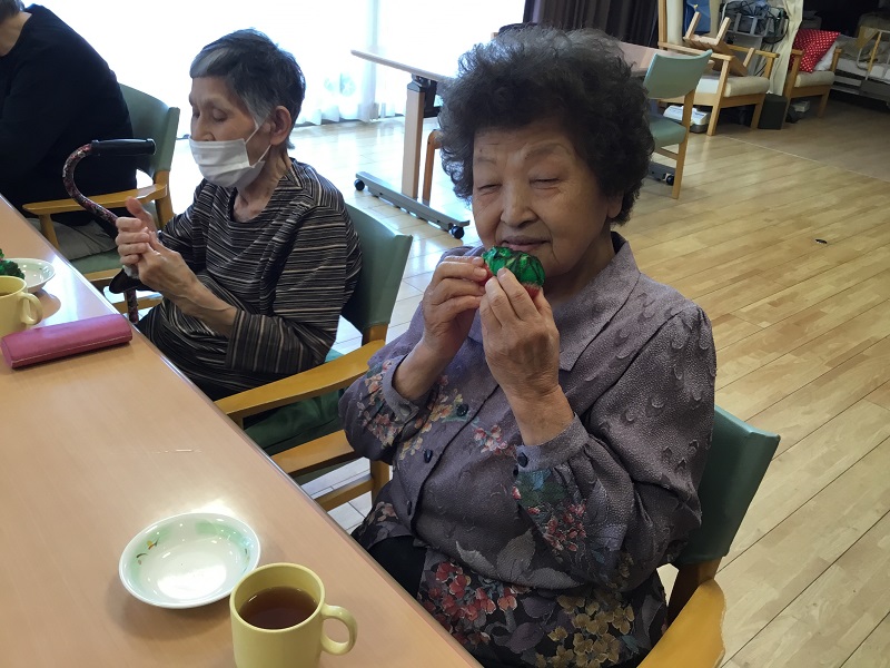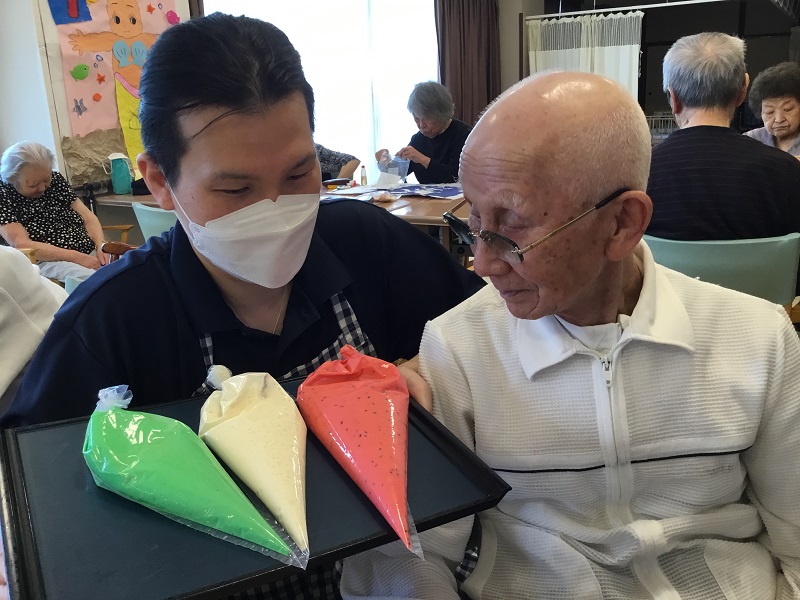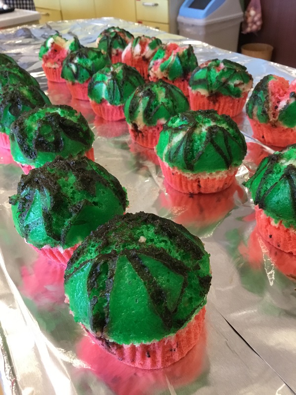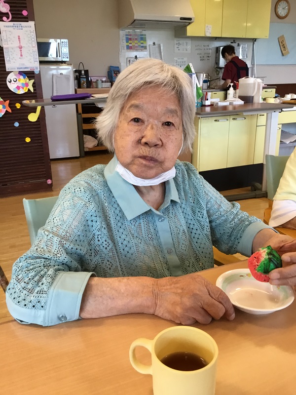 2025年07月15日(火) 手のひらサイズのスイカ 見て楽しい・食べて美味しいスイカ風蒸しパンを作りました。 生地は、赤・白・緑の3色☆ みなさま「どんなのできるんかな~」「スイカ風って書いてあったよ」と 出来上がりを楽しみに待ってくださいました。 鍋の中で膨らむにつれ、フロア内には甘~~~い香りが 漂ってきました☆ 完成した蒸しパンを見て 「かわいいね」「甘くて美味しい」「ありがとね」と うれしい言葉が沢山聞えてきました♡