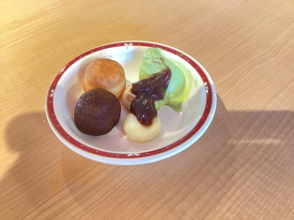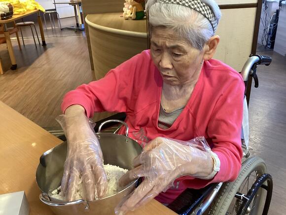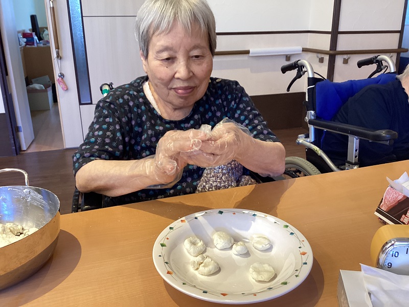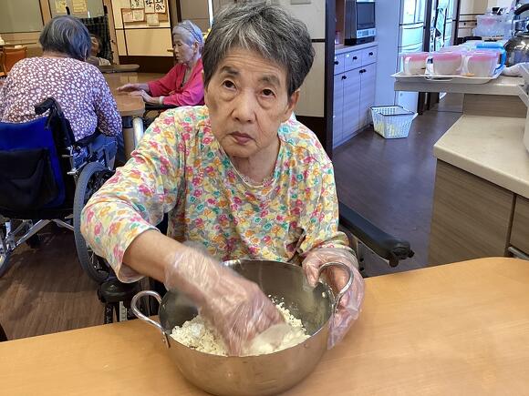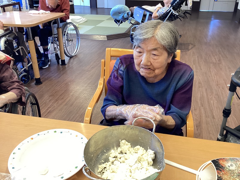 2025年08月08日(金) 白玉ぜんざいを食べよう! 白玉ぜんざいを皆さんで作りました! 楽しそうに白玉作りされていましたが、 「上手いこと丸くならんわ」「どーやってするんや」 など形を作るのに大苦戦 何とか丸い白玉を作り小豆・抹茶アイスを盛り付け♪ 「美味しい、ほっぺた落ちそう❤」 「冷たくて美味しいわ~」と大好評でした!