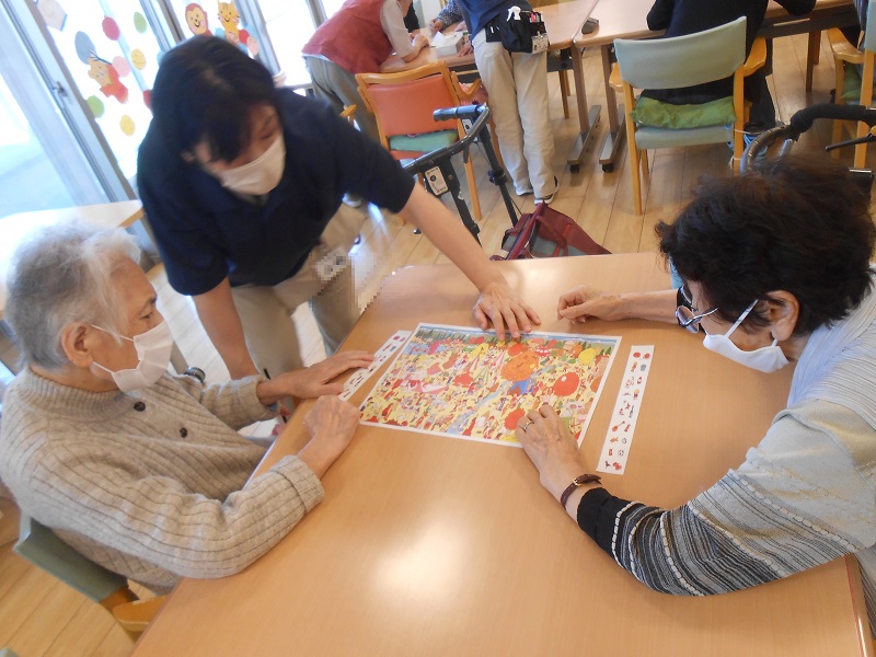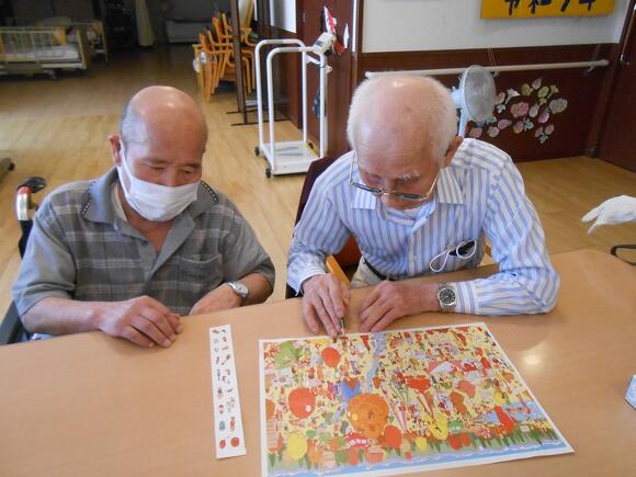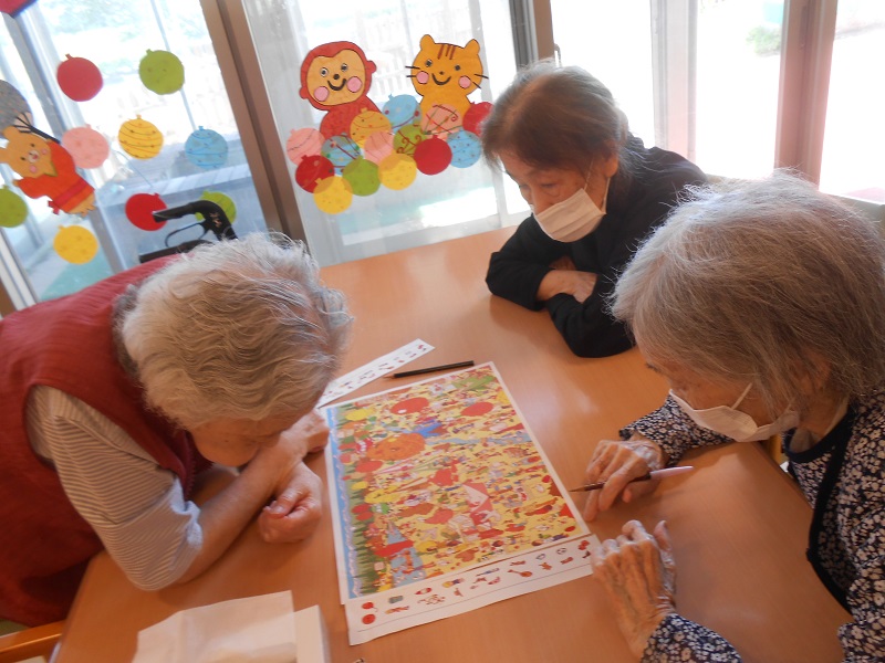2025年08月25日(月) みんなで探そう~ 今日のレクリエーションは“みんなで探そう~”です。 たくさんのイラストからお題の絵柄を探す という、なんとも細かい作業!! ですが、力を合わせれば見つけられるはず‥ 「細か~い」「これかな?」「見つけた!!」など わいわい楽しみながら取り組みました(^O^)