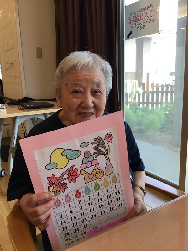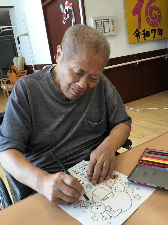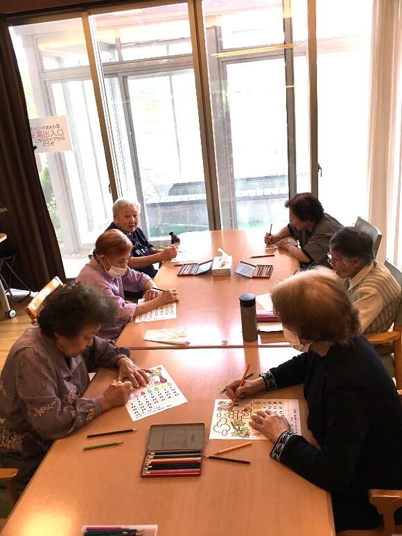 2025年08月26日(火) 塗り絵 残暑厳しいですが、少しでも「秋」を感じていただきたく 秋の塗り絵をしました。 BGMに秋の歌が流れると、口ずさんでいました♬ ほんわか秋を感じる塗り絵の会になりました。