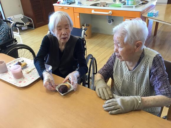 2025年09月26日(金) 天高く馬肥ゆる秋 『春や秋が短くなり四季が感じにくくなってきた』 とのお話を最近よく耳にします。 9月も後半、お彼岸などの『秋』を楽しんで 頂けるよう、恒例のおはぎ作りに挑戦しました! 今年は手作りおはぎに加え、信玄餅を添えました。 「大きいおはぎが食べたい!」と事前リクエストを受け、 見た目から楽しめる、大きなおはぎを作りました♡ (利用者さまは配膳や味見のお手伝いをしてくださいました!) 「甘くて美味しい♡」と大盛況でした!