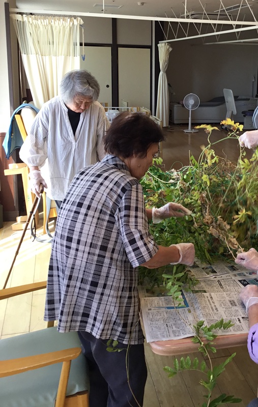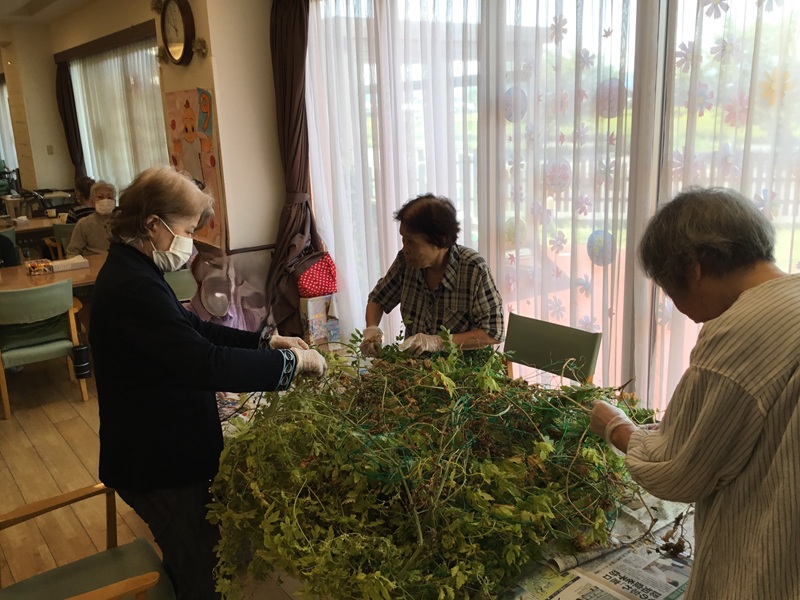 2025年09月02日(火) 蔓はずし 暑い夏の日差しを和らげてくれるように グリーンカーテンとして役に立ってくれ、 役目を終えたゴーヤときゅうりの蔓を 外していただきました。 皆さんのおなかを満たし、強烈な日差しを遮り、 大いに役立ってくれました♡