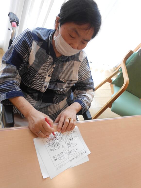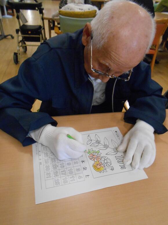 2025年09月23日(火) 秋分の日 カレンダー創作 3種類のカレンダーから好きな絵柄を選んで頂き、 塗り絵をしました! 皆さん思い思いの色を塗ったり、自分の利用日を 目立つように色をつけたりと様々でした♪