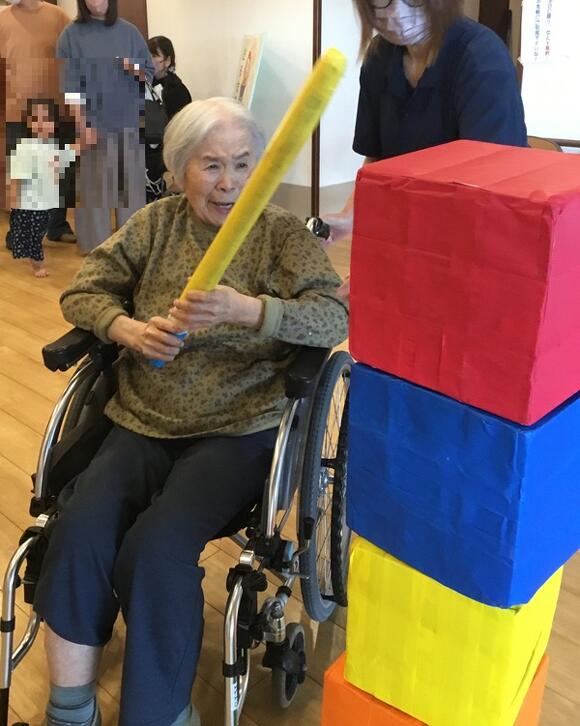2025年10月18日(土) 明峰の里秋祭り 毎年恒例の秋祭り♪ 今年もミニゲームコーナーや ボランティアの和太鼓や吹奏楽など盛りだくさん☆ 釣りゲームでは鯛を釣りあげ「めでたいめでたい!」と上機嫌。 職員お手製のだるま落としや、ボーリング、 コイン落としなどのゲームで皆さん大満足♡ とても賑やかな1日となりました!