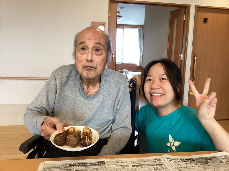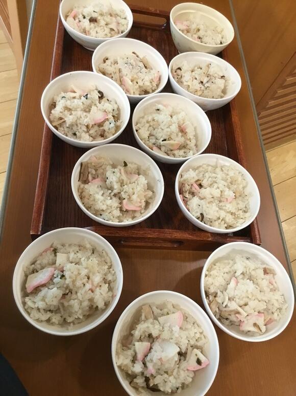 2025年09月23日(火) 松茸ご飯 理事長より松茸が届きました! 間近で松茸を見て感激!とってもいい香り~♪ さっそく松茸の炊き込みご飯を作りました。 お釜からの湯気を通してフロアは松茸の香りでいっぱい! 食欲をそそります(*^^*) 出来たてを頬張り「うまい!」「おいしいわ!」 と言いながら、松茸の味を堪能しました。