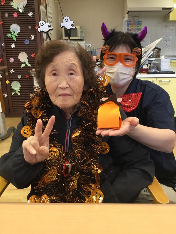 2025年10月31日(金) ハッピーハロウィーン 今年のハロウィーンはかぼちゃの お菓子入れを作りました!! 目の位置や口の位置で、 怖いかぼちゃだったり、 可愛らしいかぼちゃだったり… いろいろなかぼちゃが出来上がりました!(^^)! かぼちゃの頭がパカッと開き、 そこにお菓子を入れて持ち帰りましたよー☆♥